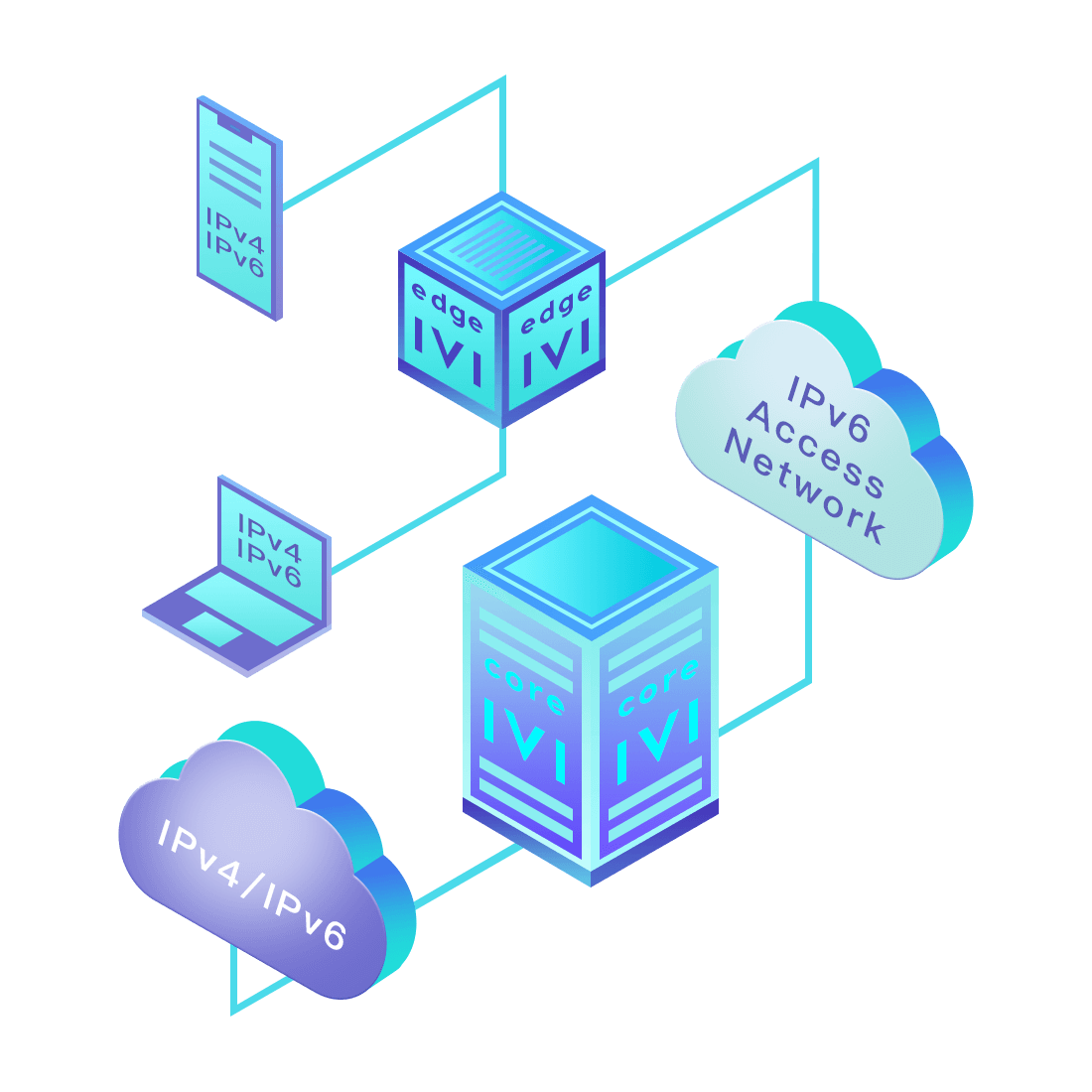 在IPv6演進的過程中,傳統的雙棧技術方案的實施代價很大,需要解決所有三層以上網絡設備,業務系統、用戶上網管理計費等系統的IPv6全面升級改造問題,而且會帶來巨大的安全風險。我們從安全性、性價比、平滑過渡特性、可擴展性等方面著手,基于IVI無狀態翻譯技術,為不同過渡階段的不同需求的用戶定制最合適的IPv6升級解決方案。